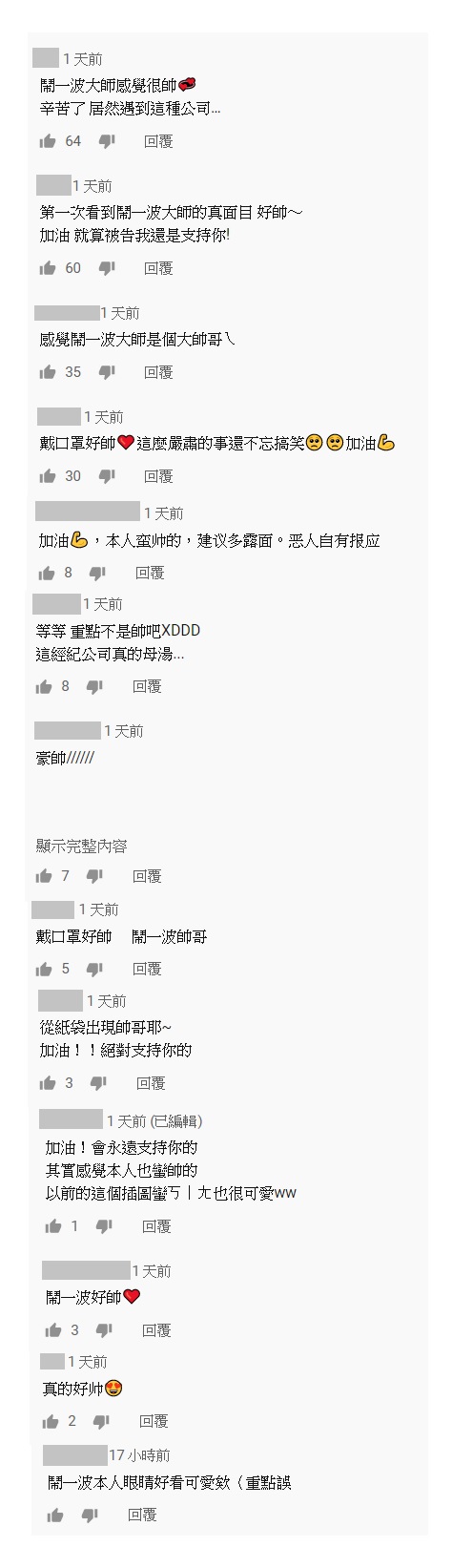 然而,在時隔數月後,「鬧一波」卻拍片透露自己「被告了」,而告他的正是前經紀公司,在此支影片中,「鬧一波」更首度拿下牛皮面具,也讓他不禁大嘆「唉~竟然會以這種方式來露面喔」,儘管畫面中的他還是以口罩遮住了大部分的五官,只露出了眼睛的部分,但仍擋不住其亮眼的外貌,讓網友紛紛留言大呼「鬧一波大師感覺很帥」「第一次看到鬧一波大師的真面目,好帥~」「本人蠻帥的,建議多露面。」「從紙袋出現帥哥耶~」「鬧一波好帥」,意外掀起了另一波話題。