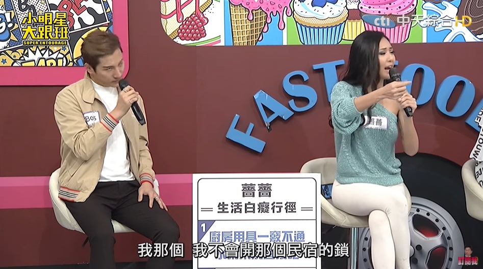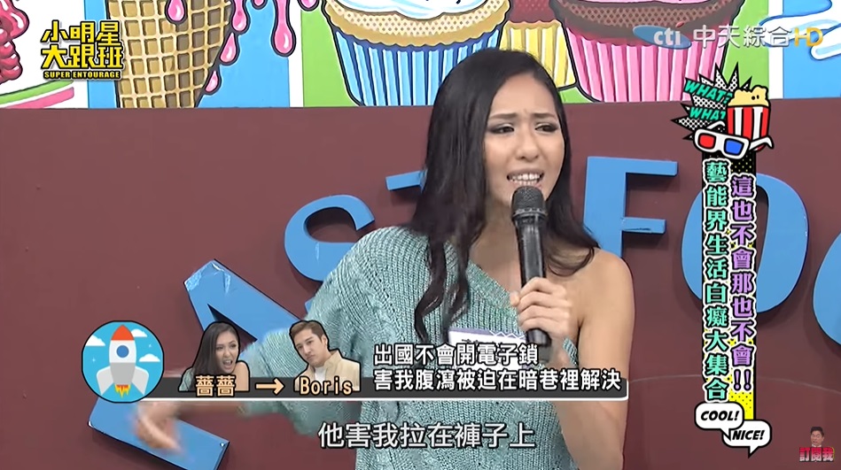 薔薔最近上《小明星大跟班》時,大方地坦承自己其實就是一個生活白癡,不僅對於廚房用具一竅不通,連開門的電子鎖她也不會用!像是有一次她跟好朋友一起去英國旅行,結果兩個人好不容易才到民宿,卻發現鎖門的電子鎖完全打不開,開了老半天都不行!剛好這時候薔薔事先因為便秘吃的瀉藥發揮藥效,讓她痛到快崩潰!
