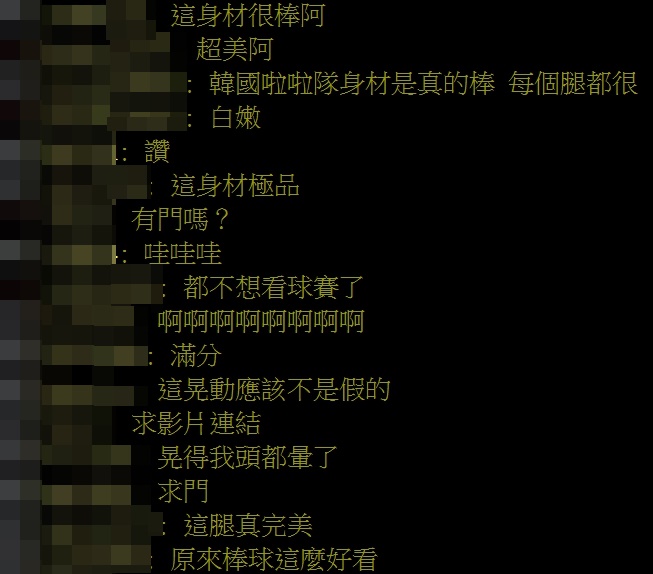 文章一出,立刻引起許多網友紛紛推爆留言,「原來棒球這麼好看」、「這腿超讚」、「韓國啦啦隊身材是真的棒」、「這身材極品」、「無聊,浪費我一小時」、「都不想看球賽了」。