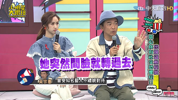 碰到如此無禮的反應,讓吳宗憲真的大傻眼,他表示,「我們就覺得很奇怪,我們這個藝能界的前輩,在跟你講話,你怎麼會突然間就看著...轉頭欸,幹嘛這樣子?眼神飄走,你看突然間有多冷」,憲哥如此生動的描述整個情境,現場來賓聽了都紛紛直呼「真的好尷尬!」。