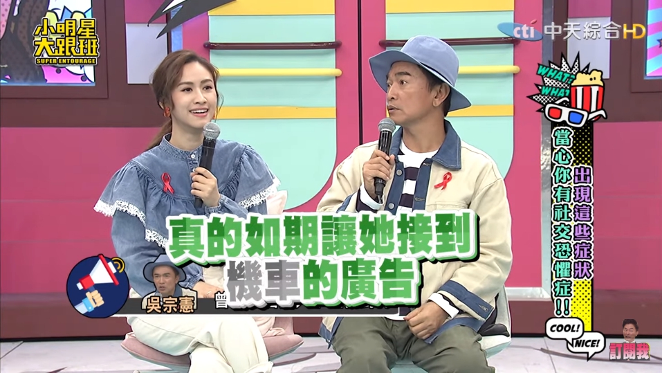 吳宗憲也諷刺的說,「這麼機車的人,後來還真的讓她接到機車的廣告」,Sandy聽了不禁問,「這是笑話嗎?」吳宗憲卻嚴肅的說,「這不是笑話,這是真的!」,他也強調那位知名藝人在廣告裡的形象就是「很酷、冷漠」,但他也透露,那位藝人在拍完那支機車廣告之後,「就從此不紅了!」