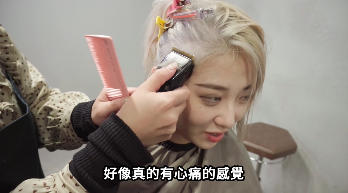 美麗妄娜在影片中透露,其實為了剃頭已經哭了半個小時!隨後也用「剃短也好看」的想法不斷安慰自己,在自拍留念即將逝去的頭髮後,美髮師便拿出電剪開始剃頭,一刀一刀剃掉髮絲,過程中美麗妄娜也直呼「真的有心痛的感覺」!改造完畢後,只見美麗妄娜頂著超短男生頭,瞬間變成一枚「帥哥」,新造型令人十分讚嘆!