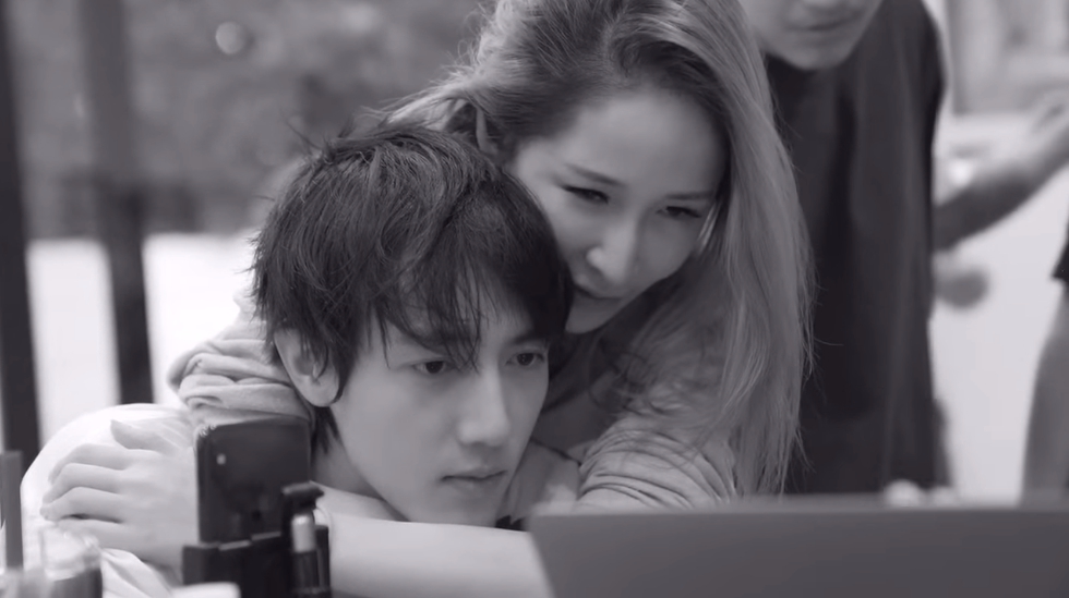 在MV中,蕭亞軒除了跟黃皓一起濕身躺在泳池裡貼身相擁,還在沙發上互相依偎、深情對望,手也在彼此身上游移,更情不自禁相擁,黃皓一開始先是背後環抱Elva,把她的頭埋在自己胸口輕輕撫摸,隨後更是一手輕撫著Elva的頭髮輕吻,甜蜜寵溺著她,接著兩人還在螢幕前情不自禁接吻,唯美又浪漫的氛圍彷彿全世界只有彼此,超級甜蜜的模樣也讓粉絲紛紛獻上祝福!