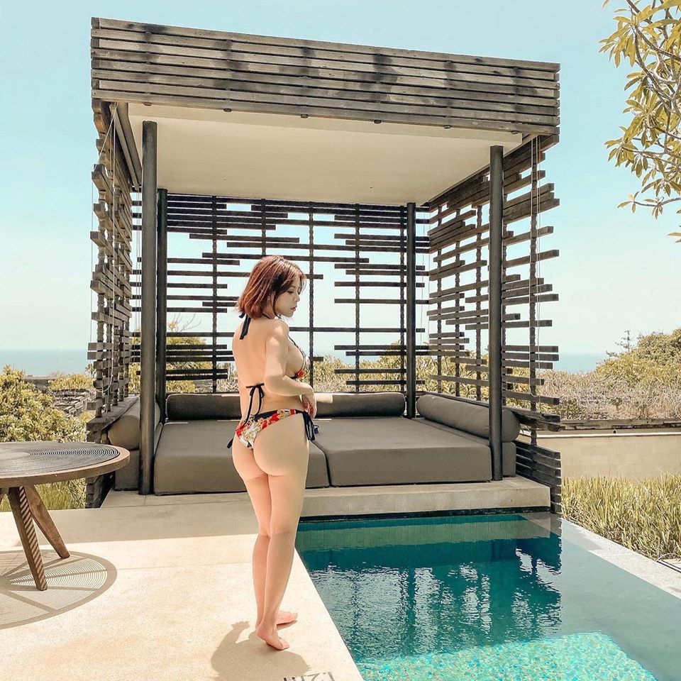 陳香菱日前飛到峇里島度假,放鬆心情,同時也在社群平台分享美照!當時陳香菱曬出一張坐在泳池旁的美照,穿著一件粉紅色三角泳褲,上空完全解放沒穿,只用腳頂住胸前的沉重雙球,一張照片讓人看了差點噴鼻血!
