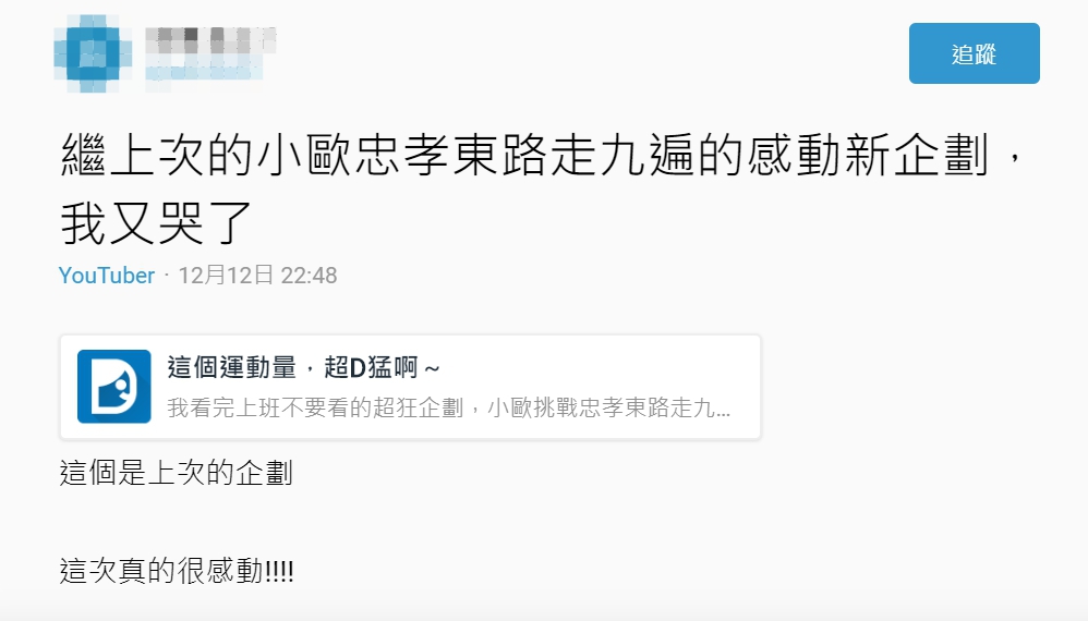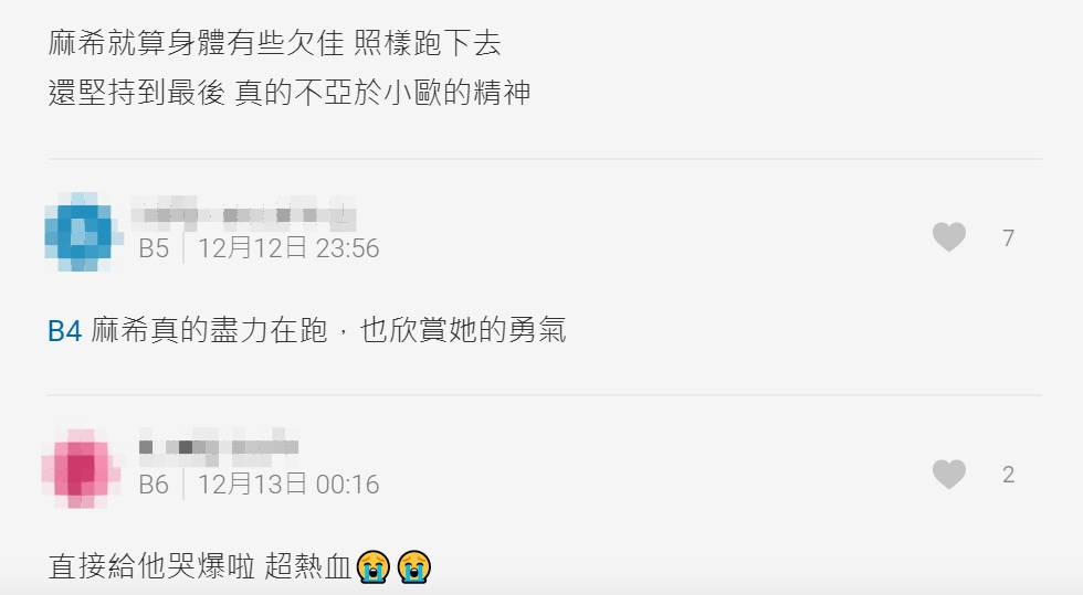 許多粉絲看完直播後,十分感動紛紛表示「看到他們跑到跨海大橋那一刻真的超感動的~辛苦上班不要看的大家了。」、「麻希就算身體有些欠佳,照樣跑下去,還堅持到最後,真的不亞於小歐的精神」、「直接給他哭爆啦,超熱血」、「看著真的超級牛逼的,他們太強了,要是呱吉有參與練習一起下去跑就好惹」、「沒看到全部直播感謝有片段,超感動的真的很有愛」、「一開始亂鬧的忠孝東路,去年認真的忠孝東路走九遍,今年澎湖環島,真的每次看每次感動!那個凝聚力啊啊啊啊」。