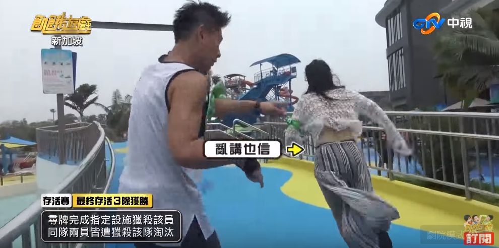 而在任務執行途中,兩人還遭到敵隊的成員嗆說任務進度緩慢「我們都已經殺掉人了,你們還在聊天」,甚至還被騙說只要碰到對方就可以獵殺該隊員,讓蔡允潔真的相信,還非常積極的想殺掉對方,跑到自己的拖鞋掉了都渾然不知!