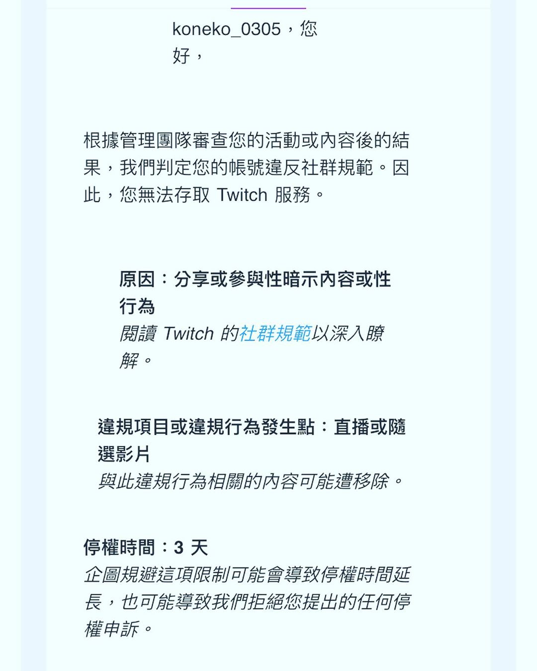 日前子喵喵到菲律賓旅遊,同時她也在遊玩時開台和粉絲互動,只見她當時穿著一身比基尼,由友人幫忙「專業掌鏡」,也因此胸前風光、翹臀通通進入到畫面中,當時子喵喵還開玩笑表示「等一下害我被Ban」,卻沒想到一語成讖!子喵喵回台後,立刻發現自己被「Ban台」,禁權三天,對此她也表示,「拍攝者不是實況主所以比較不會拿捏尺度,以後實況我會更加注意不要冒犯到圖奇條款。」