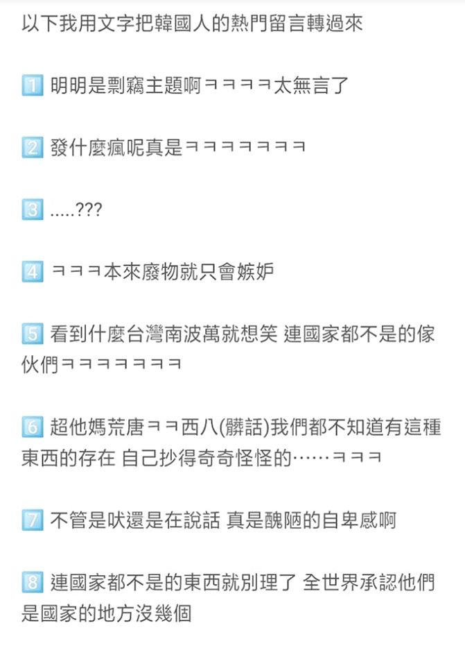 吳宗憲上次說出「高以翔是韓國人害的」一番言論,引起很大的騷動!現在不僅事情沒有平息,更延燒到韓國新聞及論壇上,無端被指控的韓國網民們也頗為不滿,無情回嗆,「明明是剽竊主題阿!太無言了!」、「發什麼瘋呢真是?」、「看到什麼台灣南波萬就想笑,連國家都不是的傢伙們!」、「不管是吠還是在說話,真是醜陋的自卑感啊!」...等,各種具有殺傷力的留言在網路上蔓延了開來!