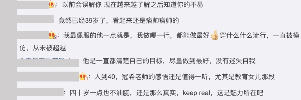許多網友看完訪問後,也紛紛留言:「我最佩服的他一點就是,我做哪一行,都能做最好」、「四十歲一點也不油膩,還是那麼真實」、「竟然已經39歲了,看起來還是痞帥痞帥的」、「以前會誤解你 現在越來越瞭解之後知道你的不易」,引起許多正面迴響。