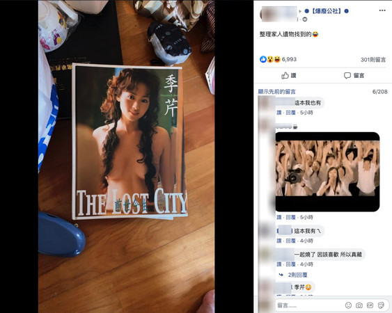 日前有網友在臉書社團《爆廢公社》上發文寫下:「整理家人遺物找到的」,在整理時發現了一本季芹的寫真集《前世今生》,該本寫真是在1999年時出版,至今也已經經過20年之久,從封面就能看出當時季芹尺度超大,上半身全裸只靠頭髮遮,相當性感。對此就有許多人在留言區中說道:「以前當兵時這可是寶啊」、「這本我也有」,更有網友笑稱:「王仁甫臉綠了」、「仁甫在你後面很火」。