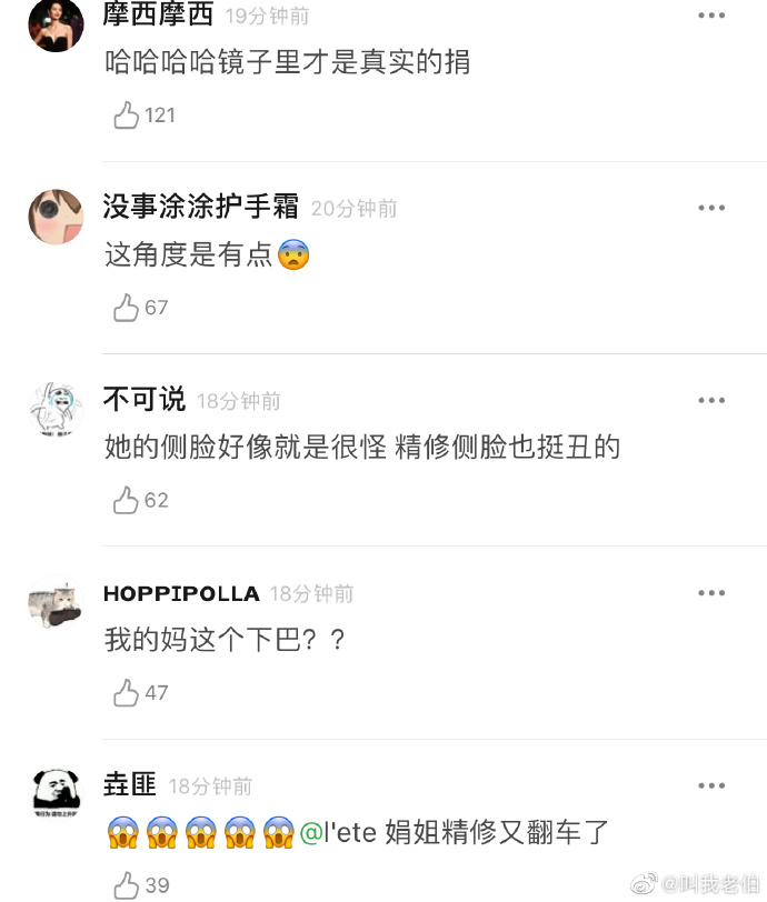 活動結束後工作室也隨後發布了一組精修照片,然而其中一張精修圖裡,她站在透明玻璃門前,微笑看向鏡頭,卻被眼尖網友發現玻璃門上映出的倒影相當臃腫,腰身和臀部的部分看起來似乎至少粗了一倍,和其他照片裡的曼妙身材形成極大對比,引發網友熱議。