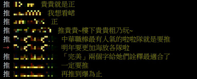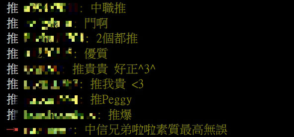 PTT表特版可說是美女如雲,近來這些正妹照竟在PTT表特版被網友推爆,引起網友熱烈討論,原來照片中兩位甜美可人的女孩其實是中信兄弟啦啦隊(Passion Sisters)的副隊長Peggy(黃沛祺)和隊員貴貴(Sammy)!有別於平常的活力陽光形象,穿著背心的兩人性感又不失甜美,令網友大嘆:「完美!」