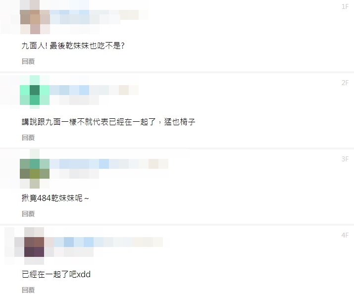 隨後也有網友將Toyz的經典回覆,剪成實況精華分享到「遊戲大亂鬪」,瞬間引來不少網友紛紛留言表示,「九面人! 最後乾妹妹也吃不是?」、「講說跟九面一樣不就代表已經在一起了,猛也椅子」、「上一個認乾妹妹的已經在一起又分手了欸」、「一個上鏡頭想宣示主權一個不想認」、「致敬酒麵嗎」。