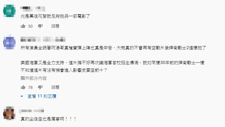 許多網友在看完花絮之後,都表示對於電影上映十分期待,紛紛留言表示:「演員都玩真的 2020一定看爆」、「光是幕後花絮就足夠拍另一部電影了」、「據我所知,湯哥在美國演員中是出了名的敬業,凡事講求真槍實彈,不喜歡用替身,很多危險動作跳高樓,跳車他都要求自己來。值得進戲院觀賞。」,更有粉絲大讚他贏過漫威英雄:「阿湯哥一人屌打一堆在綠幕前拳打腳踢的超級英雄」。雖然有網友表示,阿湯哥其實是坐在後座,不過許多粉絲還是十分激賞。