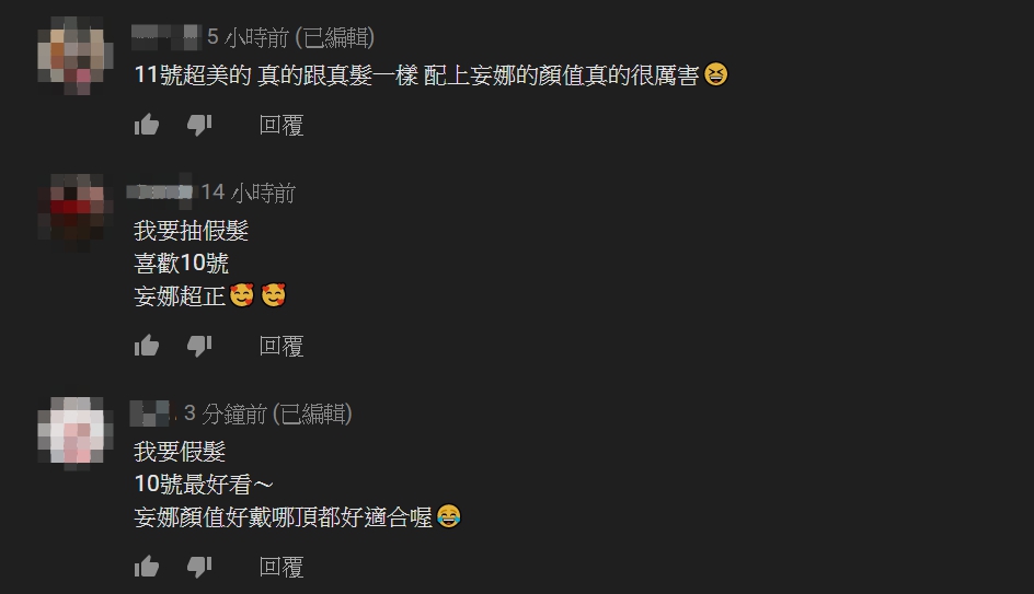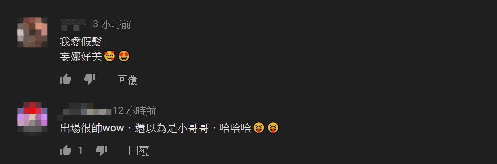 而美麗妄娜的實測影片一推出,也引來網友的熱烈回應,紛紛大讚「喵的,顏質真的決定一切餒」、「最後一個假髮好讚,我好愛妄娜」、「假髮被妄娜戴更美了啦」,但也有網友大讚她剪短之後的樣子「哪裡變美麗...明明變帥,給我們男生留條活路吧!」、「出場很帥wow,還以為是小哥哥,哈哈哈」。事實上,除了這次的「真理髮型」之外,美麗妄娜先前也曾拍過一系列真理服裝開箱,包括真理褲、真理泳衣、真理上衣等,大方放送好身材,讓網友眼睛狂吃冰淇淋。