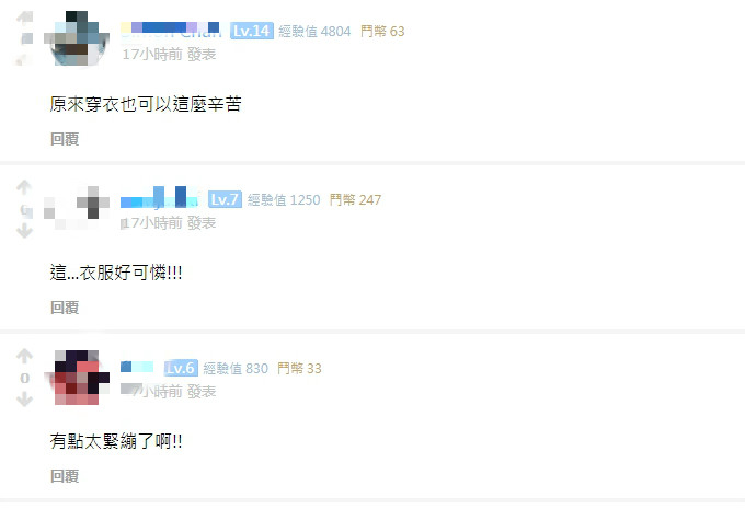 部影片被輾轉分享到其他網路平台上,有網友直接為這篇影片命名為「大到穿不上衣服的女實況」,同時有其他網友在這篇文章底下留言表示:「有點太緊繃了啊!」、「太大了」,也有網友逗趣表示:「這衣服好可憐」、「原來穿衣服也可以這麼辛苦」、「這困擾也太可怕了」,除此之外,也有位網友給出實際建議,表示穿著這麼緊繃的衣服應該會非常不舒服,還是穿寬鬆點比較好。