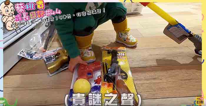 日前,網紅蔡阿嘎在個人Youtube頻道上傳一則影片,內容為帶兒子蔡桃貴去挑禮物,當蔡阿嘎與二伯來到店裡的玩具區後,便讓剛滿一歲五個月的兒子自己挑選。影片中可以看到,一家人拿了許多玩具放在地板上挑,然而在這個過程當中,蔡桃貴多次不經意地踩到玩具,而被踩過的玩具最後若沒被選中,便被放回架上。由於蔡阿嘎、而伯在影片中並未及時糾正,因此也引發不小爭議。