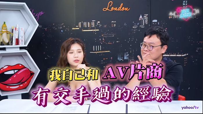 雞排妹最近在節目《深夜保健室》中,邀請到謎片達人「一劍浣春秋」,一起來談談日本AV拍片現場的秘辛!雞排妹透露,自己19歲時曾經簽了一家日本的經紀公司,該公司的社長雖然是擔任跟台灣電視台協助授權的中間角色,不過他們主要經營的其實是AV產業。當時這位社長得知雞排妹在台灣爆紅後,曾提出想幫她做一些「日本影音的規劃」。