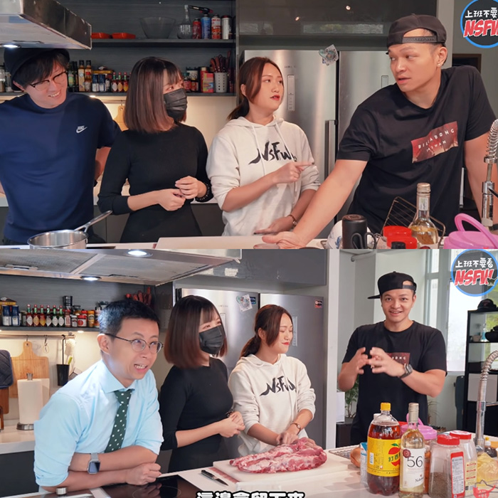 日前,「上班不要看NSFW」上傳一則全新影片「聖誕串連企劃,地獄廚房大亂鬥!」,是知名大胃王網紅千千發起的活動,要求參與者運用指定食材做出聖誕節交換料理,為此上班不要看成員關關與麻希特別到網紅「廚佛Fred」的廚房準備超困難料理豬肋排,料理時間前後竟花了6個小時!在辛苦製程的美食交換出去後,上班不要看團隊竟換來了網紅「黃氏兄弟」準備的地獄料理「火雞珍珠奶茶」,引發網友熱議。