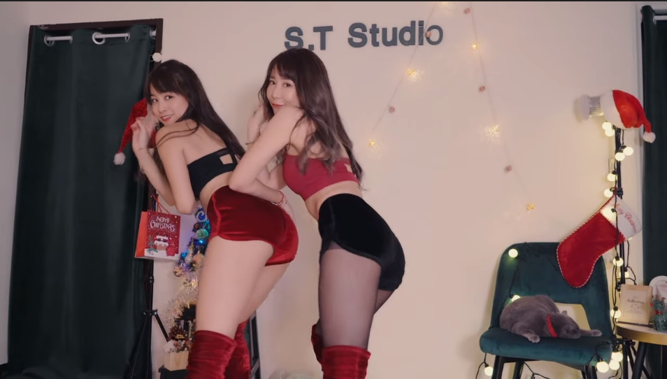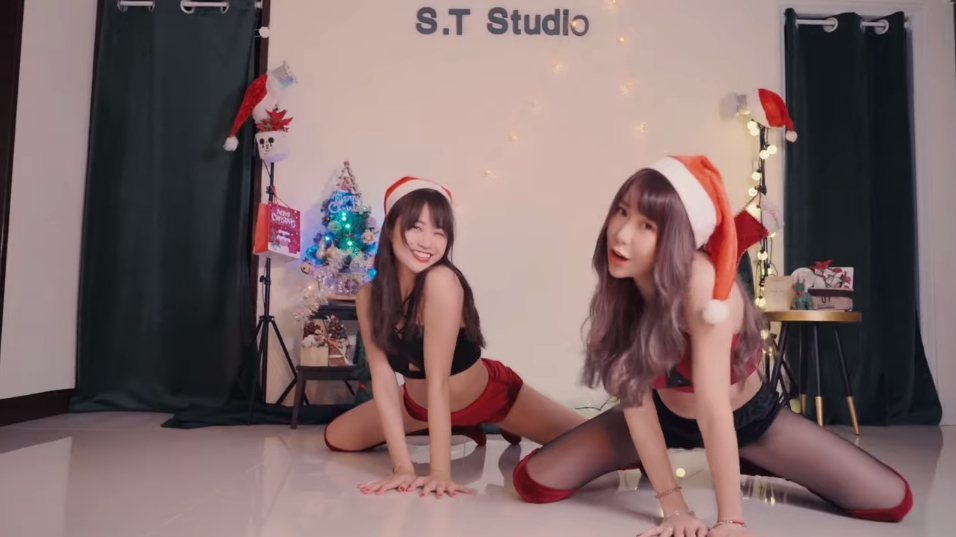 一年一度的聖誕節即將到來,梓梓日前也在個人的YouTube頻道上傳一則新影片,合體陳伊在自己家裡大跳熱舞,大方放送福利。兩人穿著黑色與紅色的短版上衣,衣服中間開了一個三角洞,微微秀出南半球,十分性感。影片當中,兩人隨著「X’mas Santa Baby」的背景音樂大跳動感舞蹈,渾圓蜜桃臀更是隨著節奏不時搖擺,雖然影片只有短短一分多鐘,但兩人雪白肌膚、性感身材,讓網友不禁陷入瘋狂。