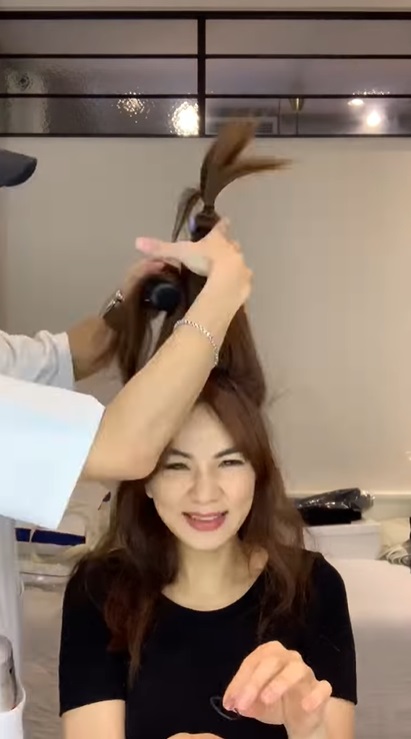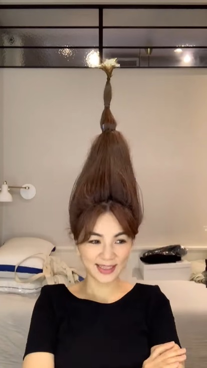 我們從影片中可以看到,Ella坐在椅子上讓髮型師替她設計「聖誕樹頭」,看髮型師將她的頭髮一把一把的往上弄,很迅速地一下子就可以看到Ella的頭髮變成了一個圓錐形的模樣,接著髮型師把一顆顆裝飾球給掛了上去,並且繞上銀蔥繩跟會發亮的燈泡,一瞬間,整顆頭就變成了一棵聖誕樹啦!