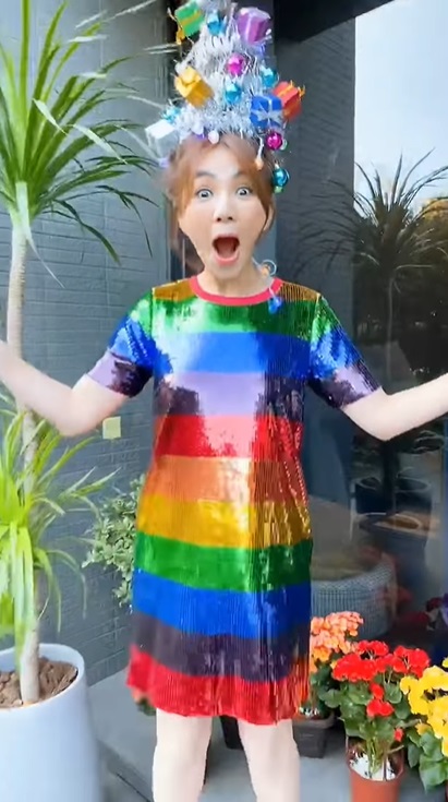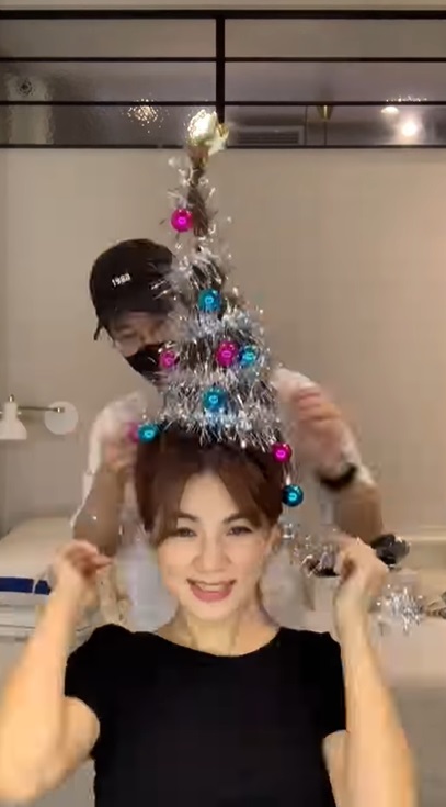 行動聖誕樹4ni?Ella頭頂「一飛衝天」浮誇髮型 掛滿銀蔥、彩球嗨轉圈:解接頭上會發光哦~