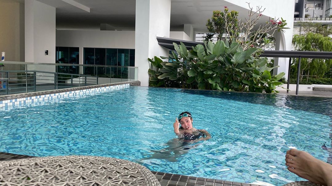 陳芳語日前在Instagram上曬出一段在戶外泳池裡游泳的影片,即使已經到了冬天,她仍然大方穿著黑色連身泳衣入鏡,往右滑之後緊接著是幾張照片,她時而在泳池裡以仰式泳姿游泳,時而又雙手蒙著眼睛,最引人注目的其中一張照片的她,竟伸手對鏡頭比出中指,張大雙眼表情略顯誇張,還在配文裡寫下「To all you muthafckers that say i only take photos in bikinis, I swim too bitch.(告訴你們這些混蛋,我不只會穿比基尼,還會游泳。)」向酸民嗆聲意味濃厚。