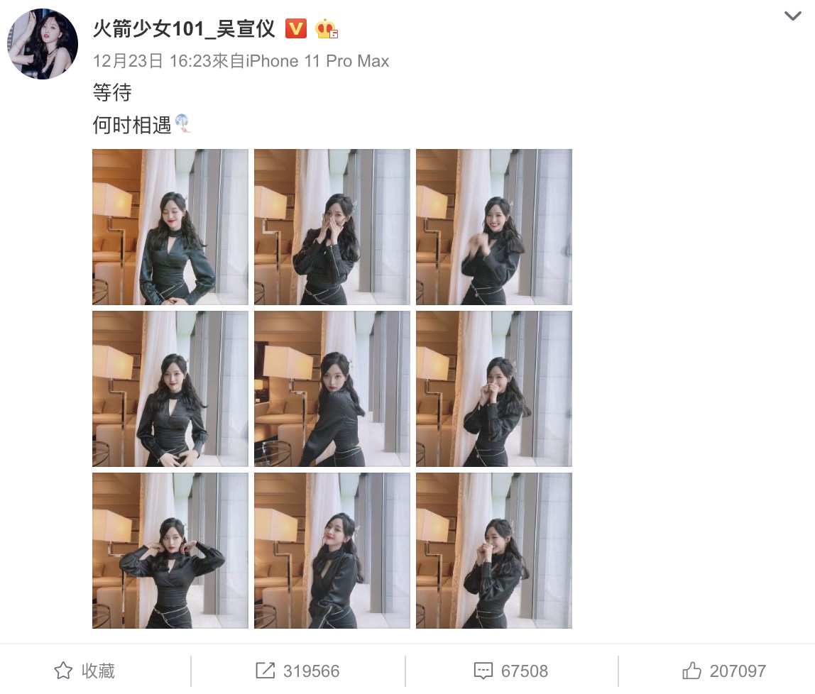 大陸女子團體「火箭少女101」是由騰訊在去年時推出的《創造101》中選出11位所組成的團體,團體限定兩年的活動期間,預計於2020年6月23日合約到期,然而團體出道後討論度也不斷增加,所到之處都成為一陣話題,吳宣儀甜美亮麗的外型也成為許多時尚品牌、雜誌的寵兒。在23號時,吳宣儀也在微博上曬出一組美照,就有眼尖的網友發現胸口因為V領開太深,甚至還用線縫起來,引發熱議。