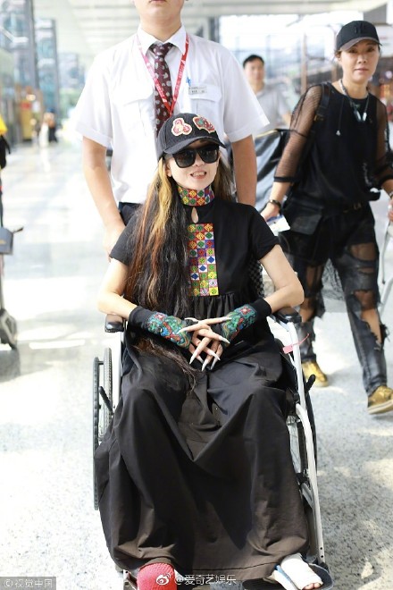楊麗萍今年八月在排練舞劇《春之祭》的時候意外摔傷,腿部多達四處骨折,然而先前她坐著輪椅現身機場時,穿著民族風的繡花黑裙,雖然左腿打著石膏,卻大方對鏡頭微笑,手上的白色長指甲看起來十分搶眼。