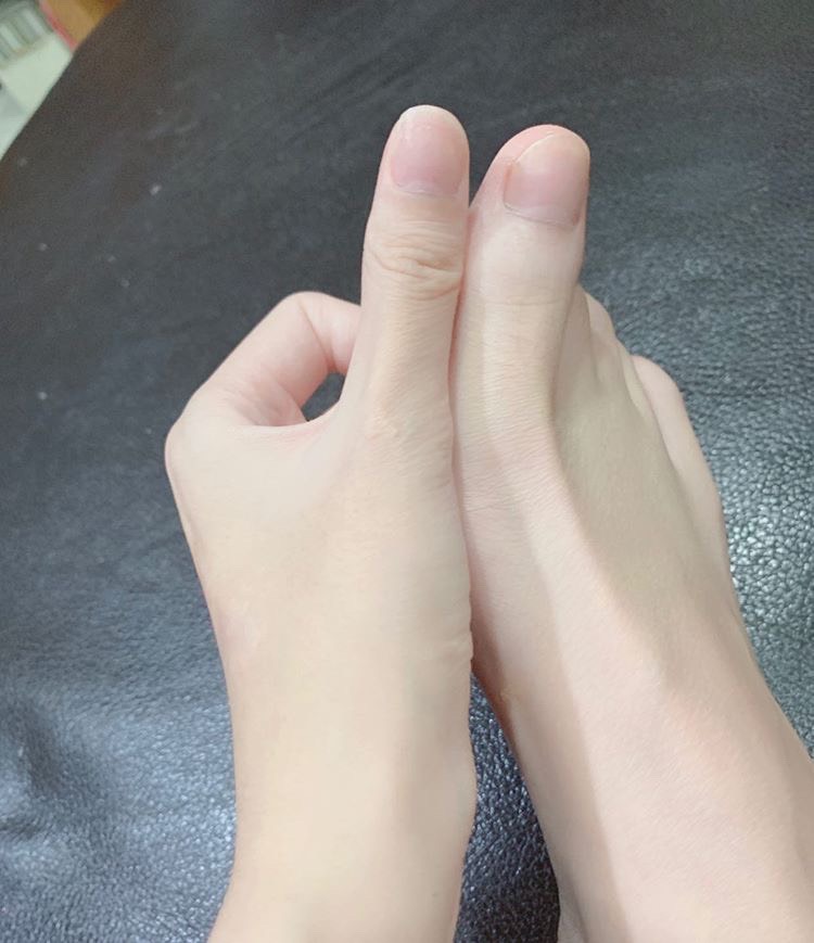 日前阿乃突在限時動態中曬出「指頭」照片,令人驚訝的是,阿乃的腳趾頭和手指頭一樣長,照片更讓人一瞬間分不出是手還是腳!而阿乃隨後也曬出完整長腿照,並且配上文字表示,「媽說我的腳長的很像手,因為腳趾很長…」。
