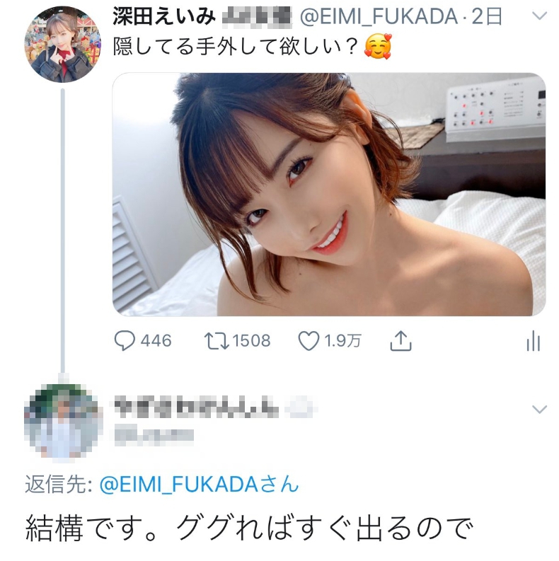 日本成人界競爭激烈,每年都有許多外表甜美、身材姣好的女優推出作品。雖然近年來,有許多知名女優退役,不過也有許多女優復出,更有幾個新的「素人」崛起。近期以來,深田詠美的風頭正盛,十分有機會成為「新一代代表人物」,在2019年女優的下載排行榜中,她甚至只輸給波多野結衣,搶下第二名寶座。近日,她在推特上放送福利,結果居然遭到粉絲吐槽,讓她轉發到推特,表示:「不要說那麼讓人傷心的話」!