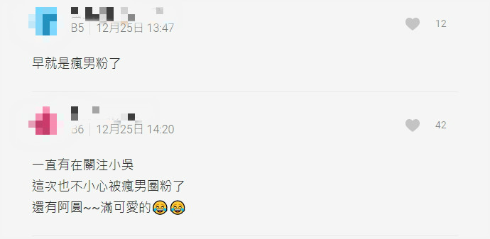 這篇文一出,立刻掀起網友熱烈討論,紛紛讚賞小吳、瘋男的行為與態度,也讓許多小吳的死忠粉絲浮上檯面大力推薦自己的偶像,他們表示:「一直有在關注小吳,這次也不小心被瘋男圈粉了!」、「因為本來就是吳粉~」、「本來就是小吳粉+1」