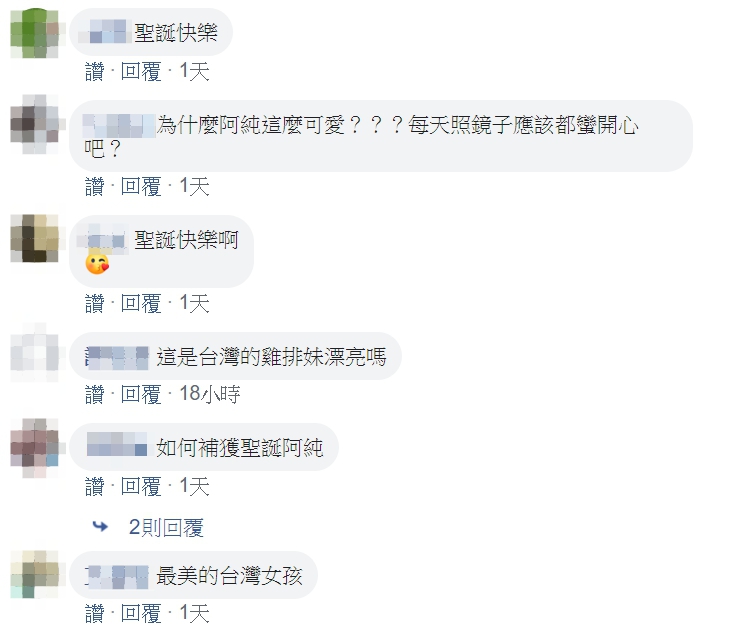 雞排妹也在發文中寫道,「麋鹿阿純,祝大家聖誕快樂!」,其他網友看完也都紛紛留言表示,「哇嗚...寫真年曆裡沒有這張真可惜!」、「漂亮的阿純~」、「最美的台灣女孩~」、「老婆今天好棒><」、「漂亮」、「這隻可以帶回家嗎?」、「聖誕快樂,紅通通!」、「可以拆禮物嗎?」、「這鹿......我要了...!」、「太可愛了」、「太正了啦~這裙子超短,腿看起來很長!」。