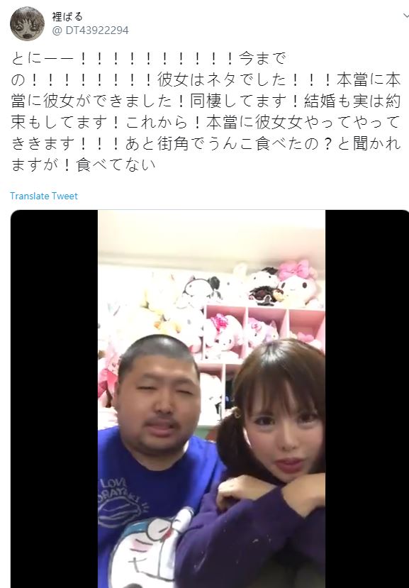 日本有一名24歲的主播主「ぱるぱる(ParuParu)」,因為長得不好看,又沒有穩定工作,而被網友用「肥、窮、醜、毒」形容。不過因為他有一個神級女友「えるまる(Erumaru)」,不僅長相超正,還提供吃住,讓網友ぱるぱる被封為「勵志哥」,結果在兩人吵架分手後,勵志哥不出3天,又交了一個正妹新女友,結果最近再傳分手,引起了熱議!