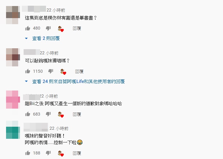 模仿影片一出,立刻引來不少網友紛紛留言表示,「繼Bii之後,阿嘎又產生一個新的道歉對象嗎哈哈哈」、「低音某些咬字像畢,高音蠻像的」、「阿嘎唱得好欠扁,嘎妹唱的太好聽了吧尤其是天真有邪!」、「不愧是模仿大師!一看就知道是阿扣XD」、「又想出來道歉惹嗎?!」另外也有許多粉絲大讚嘎妹唱歌非常好聽,不斷敲碗能出一支嘎妹獨唱影片!