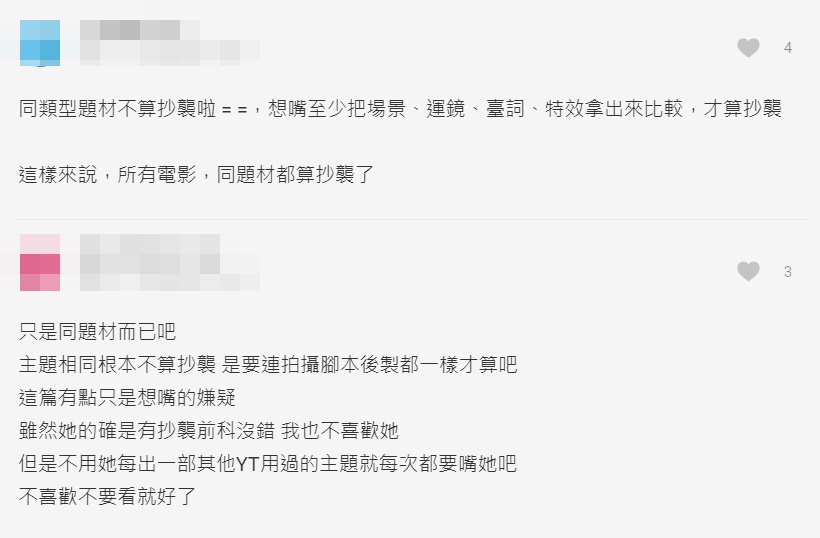 不過也有不少人跟原PO持相反意見,認為「挑戰用台語逛菜市場」這個題材早在眾量級前就有Youtuber拍攝過,且在Youtuber眾多的時代,許多企劃都十分相似,很難界定抄襲範圍,「根本就是為了攻擊kiki而攻擊」。但立刻有人反駁表示,過去Kiki很明顯連影片細節都一樣,才會造成「抄襲」標籤離不開她。
