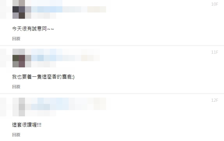 湘湘實況結束後,便有人將湘湘的聖誕Cos剪輯成實況精華分享到「遊戲大亂鬥」上,引來不少網友紛紛留言表示,「太棒了又多一個可以追的實況主」、「這隻麋鹿我願意養啊!」、「這個開衩 阿斯~」、「我也要養一隻這麼香的麋鹿」。