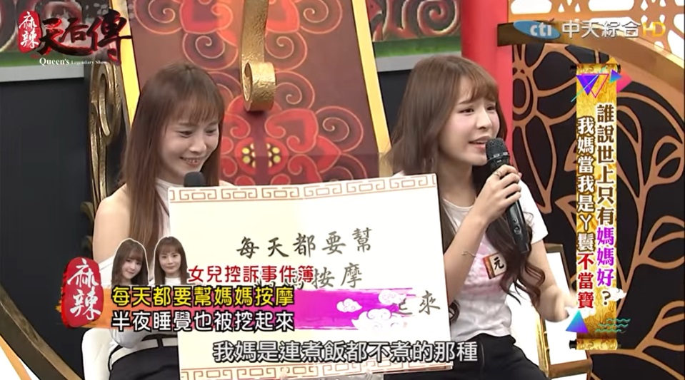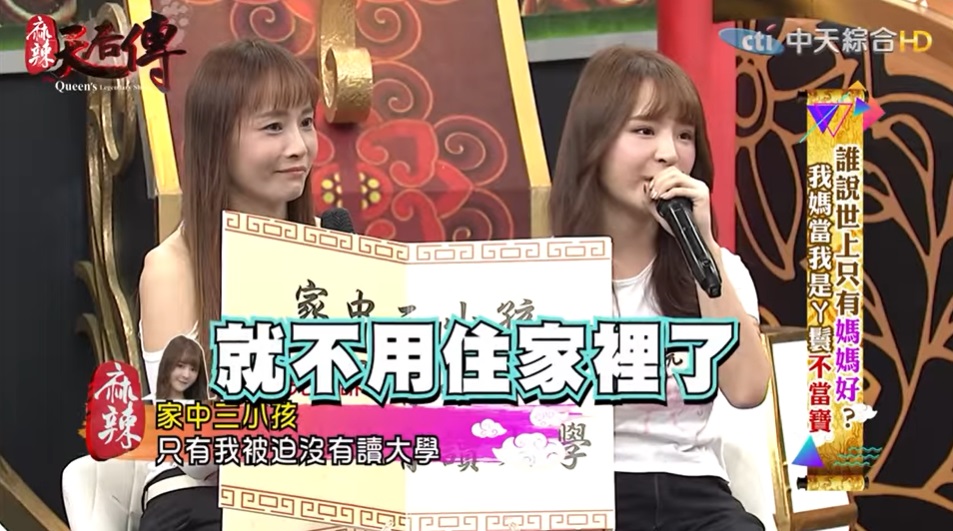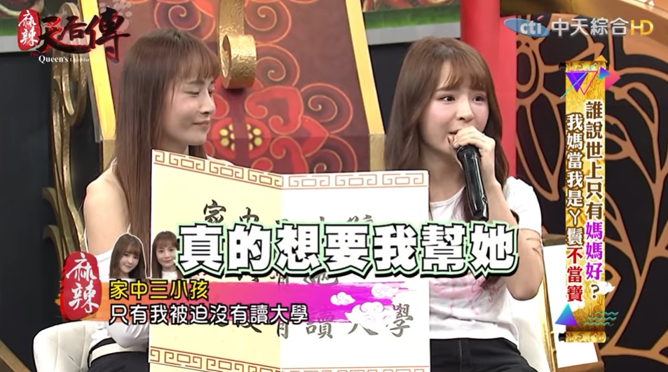 元元先前在社群平台上PO出她跟媽媽的合照時,讓許多粉絲跟網友都誤以為她們是雙胞胎姊妹,兩人的高顏值也都獲得大家的好評!元元在節目中也提到,她每天都會在媽媽結束工作之後,幫忙媽媽按摩,但只要媽媽發現她在念書的話,就會生氣,還說明明哥哥跟妹妹都不愛念書,但她的成績都很不錯,媽媽卻不肯讓她讀大學,甚至對她說,「你如果繼續念書,就不要住家裡!」