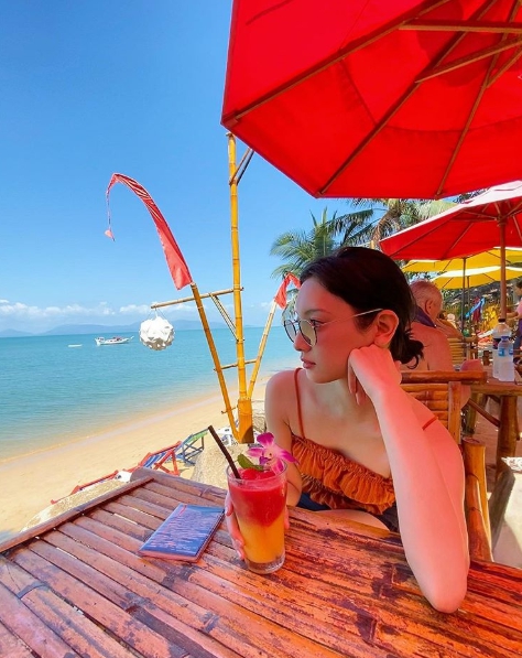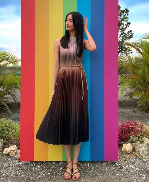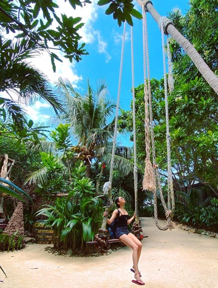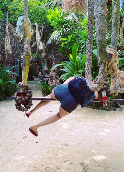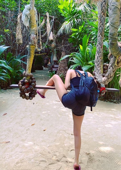 日前,她拍完日劇《4分鐘的金盞菊》後,來到南洋小島度假過聖誕節,特地PO出了多則在沙灘拍的美照。其中一則貼文先是她穿著黑色小可愛、牛仔熱褲,坐在看似是森林裡的一座巨大鞦韆上,仰望天空的超美意境照,不料下一張卻是她揹著後背包,吃力地爬上距離地面有好一段高度的巨大鞦韆,耗了好大的功夫才爬上鞦韆,在這幾張照片旁她寫道:「精彩照片的背後」,這幾張搞笑照片的反差使得網友哭笑不得,不過照片裡她的修長仍然吸睛,引來13萬位粉絲按讚。