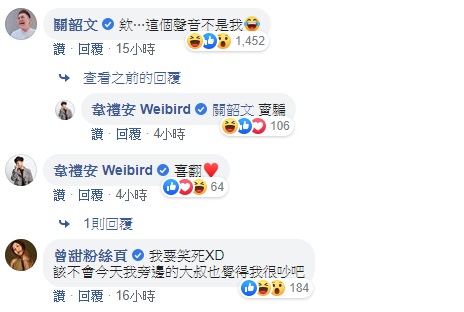 這一段精彩的影片很快就在網路上瘋傳開來,而蔡依林本人看完影片之後,也在臉書轉發並寫道,「晚輩的嗓肌,著實不如長輩的鋼硬!」馬上也吸引了許多粉絲在貼文下方留言說,「會不會是關韶文唱的啊?」讓關關馬上出面否認,「這個聲音不是我!」結果韋禮安也留言要關韶文「賣騙!」逗得大家笑到不行。