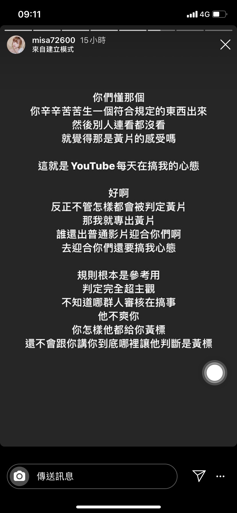 Youtube當色情頻道經營!米砂「片片黃標」遭官方排擠