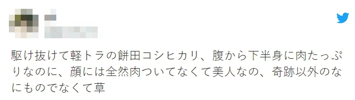 在節目中只穿著三角褲的她,由於下半身肉肉太多,完全把內內遮住,乍看之下就像是沒穿褲子。而她的甜美小臉,配上反差的肉肉身材,也在推特上引爆超高討論,網友紛紛表示「腹部開始的下半身超有肉,臉卻是完全沒肉的美人,這根本就是奇蹟。」、「這就某些族群來說是絕對需要的體型」、「一瞬間差點以為是AV」、「去那類型的(風俗)店絕對比在演藝圈還賺」。