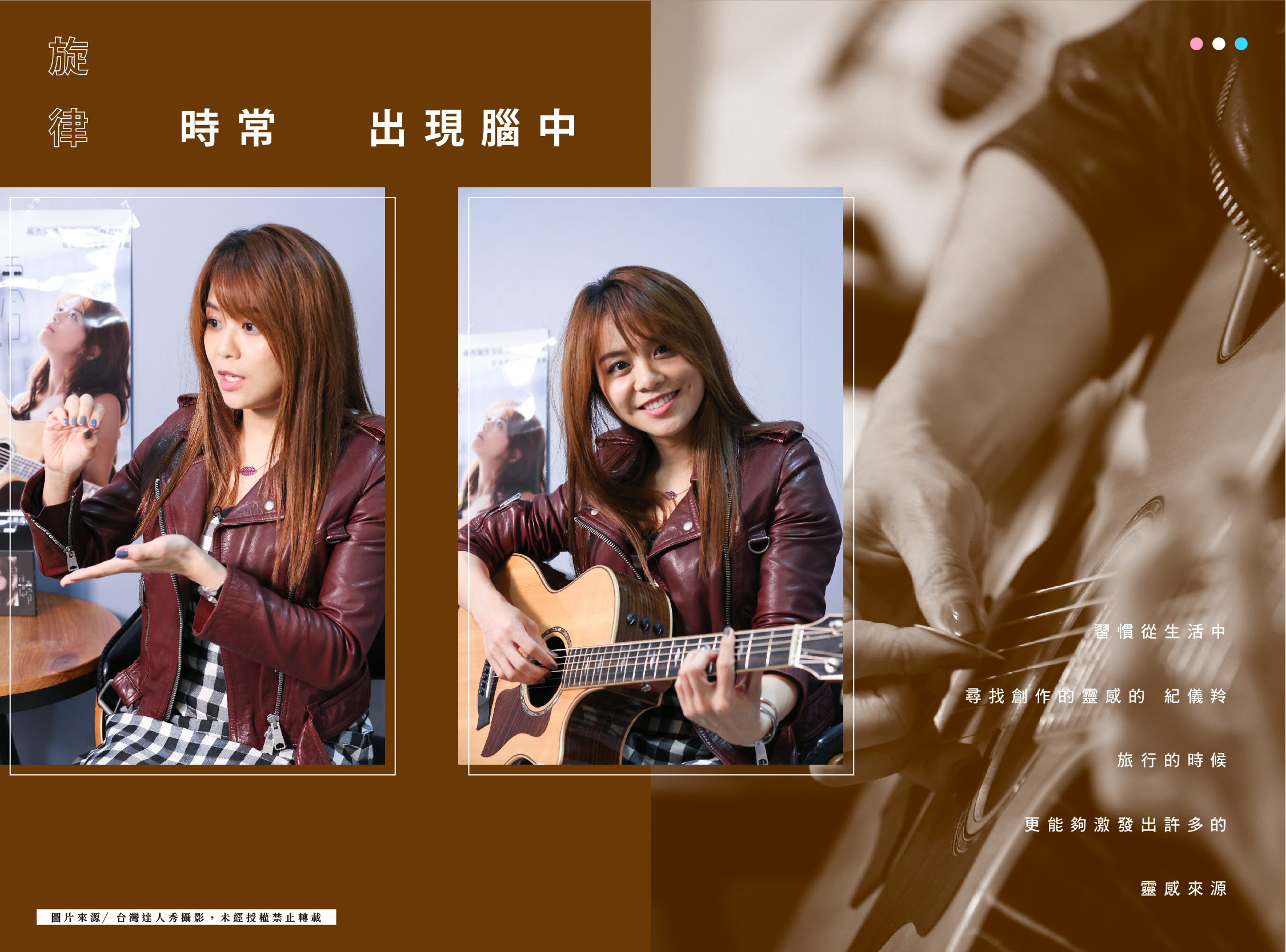 紀儀羚笑稱,創作出第一首歌時,她坐在學校的噴水池邊,所以一邊寫歌,一邊還忙著打蚊子。習慣從生活中尋找創作的靈感的她,旅行的時候,更能夠激發出許多的靈感來源。