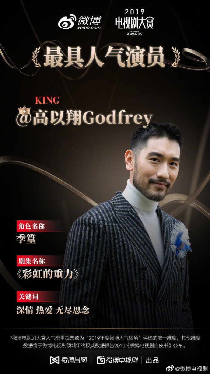而同樣跟高以翔一起競爭電視劇大賞「最具人氣男演員」獎項的人,還有演出《倚天屠龍記》-林雨申、《初戀那件小事》-賴冠霖、《陳情令》-王一博、《白髮》-羅雲熙、《流淌的美好時光》-馬天宇、《陳情令》-肖戰、《親愛的,熱愛的》-李現、《加油,你是最棒的》-鄧倫、《倚天屠龍記》-曾舜晞。