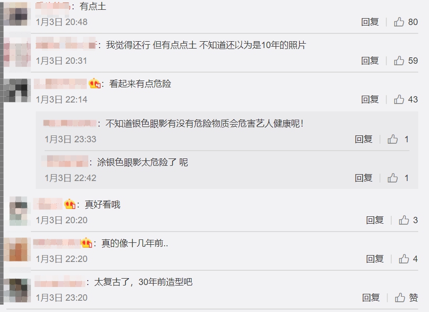 然而歐陽娜娜的復古造型卻引發網友熱議,紛紛表示「我覺得還行,但有點點土,不知道還以為是10年的照片。」、「真的像十幾年前...」、「太復古了,30年前造型吧。」、「不太可好像」、「不好看講真。」、「這難道不是非主流回歸了???」,但也有網友表示:「真好看。」、「俏皮可愛,娜娜超好看的。」、「我覺得挺好的啊,亞洲人一定要服從於大地色嗎?我不服。」、「這造型太可愛了。」