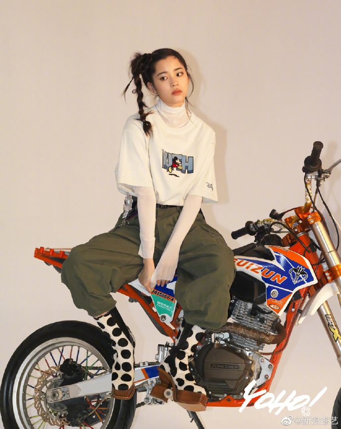 歐陽娜娜近日曝光最新時尚大片,以一頭高高的馬尾辮搭配各種俏皮可愛的髮夾,展現十足青春氣息,臉上妝容雖然不多,但最引人注目的是她的銀色眼影,讓整體造型變得復古,另一張照片中她時而站在桃紅色格紋布幕前,時而騎在復古機車上,俏皮又古靈精怪的模樣十分可愛。