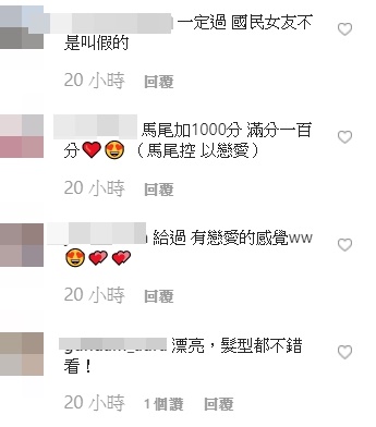 然而咪妃的貼文一出,由於照片中她綁著一頭馬尾,因此也引來不少粉絲紛紛歪樓表示,「馬尾太讚了」、「馬尾加1000分 滿分一百分」、「國民女友不是叫假的」、「給過~有戀愛的感覺」、「怎麼一樣是馬尾妳綁起來就是這麼仙」、「我這個人很簡單,有馬尾就是101分」、「綁馬尾的樣子真是女神」。