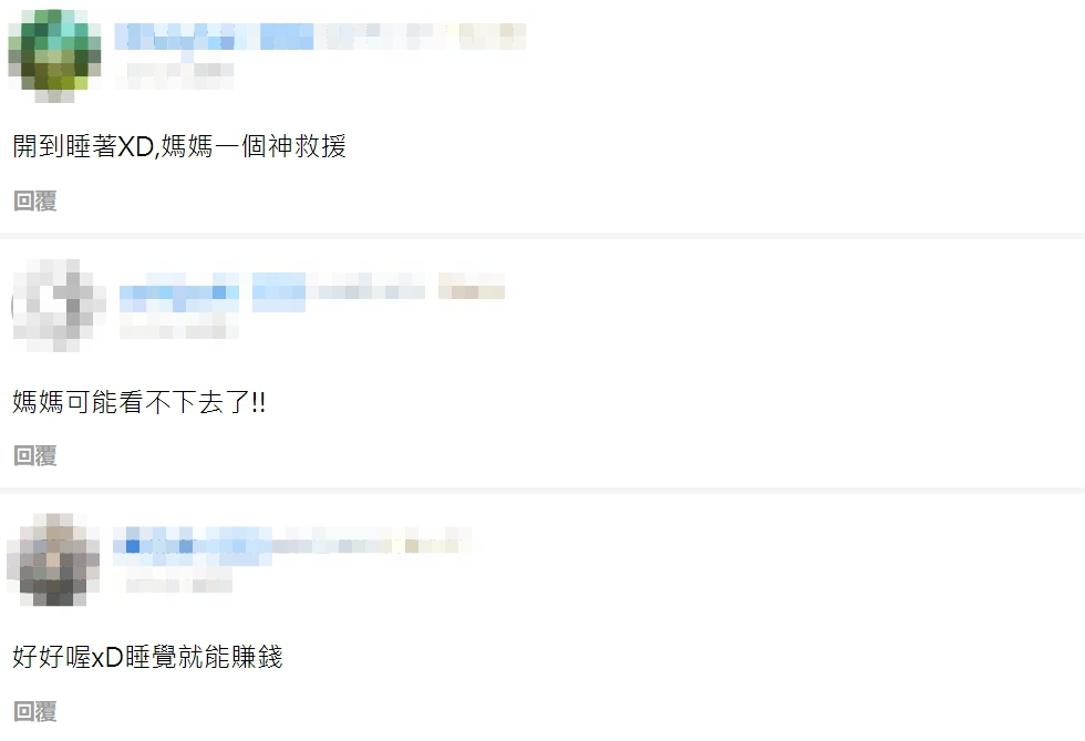 企鵝妹睡著的影片,立刻被網友上傳到知名影音平台「遊戲大亂鬥」,引起熱烈討論。網友紛紛留言「開到睡著XD,媽媽一個神救援」、「媽媽可能看不下去了!!」、「好好喔xD睡覺就能賺錢」、「也太猛了吧!!!」、「睡著的樣子太可愛了吧」,也有網友心疼表示「24H真的超辛苦的」、「真的太累了啦~~」。