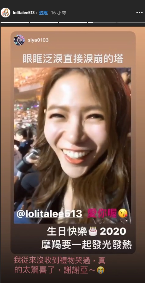 從蘿莉塔的IG限時動態中可以看到,她5日跟著嘻小瓜還有斯亞一起去台北小巨蛋參加蔡依林的演唱會~因蘿莉塔的生日是在12月31日,剛好那天也是蔡依林的演唱會,但是都沒有搶到票,於是身為好朋友的斯亞便決定要幫她買到蔡依林的票,費了一番功夫,終於買到5日的票,開開心心的帶著蘿莉塔一起進小巨蛋看演唱會,送給她一個最難忘的生日禮物!