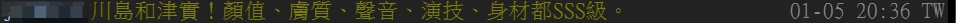 而其中最常被網友提到的名字便是日本知名女優「川島和津實」,她自1998年出道迅即走紅,至1999年5月宣布退出AV界出嫁,期間雖然只拍了六部作品,卻成為許多男性心目中永遠的情人,「川島和津實!顏值、膚質、聲音、演技、身材都SSS級。」、「川島和津實,這個雙人組合歷久彌新」、「永遠的川島和津實」、「你把川島和津實放哪了。」